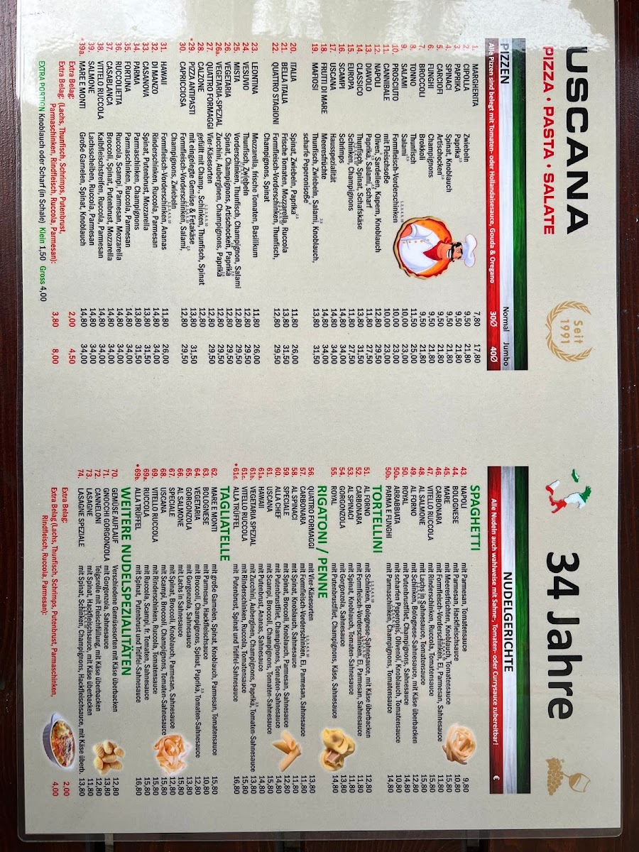 Welcome to Pizzeria Uscana, a culinary gem located at Bilker Allee 1 in Düsseldorf, Germany. This charming establishment has gained a stellar reputation for its mouthwatering array of pizzas and pastas, quickly becoming a favorite among locals.